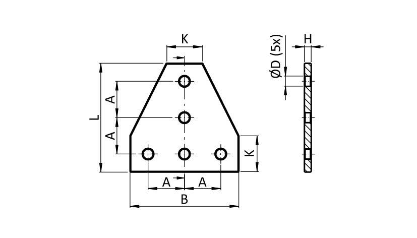 ECO Connection Plate AL T 5 Hole, 1 Slot Version