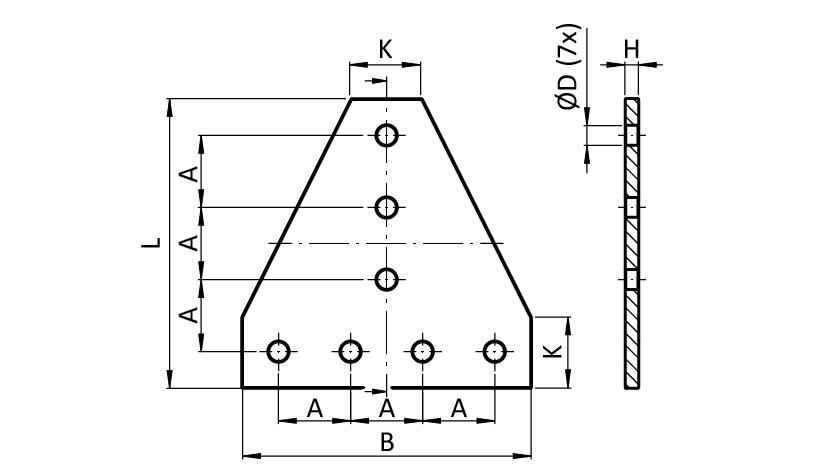 ECO Connection Plate AL T 7 Hole, 1 Slot Version
