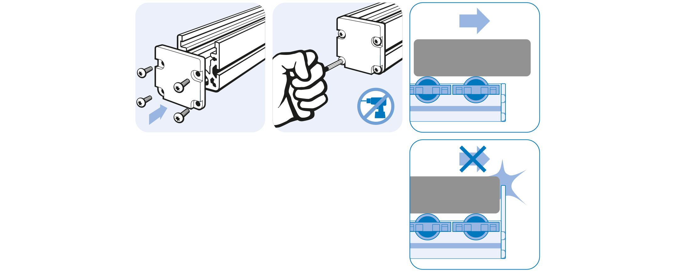 To close the end face of AL roller track profiles, preventig inserts from slipping out, additionally the long version has an end stop (optionally, a buffer stop can be added)