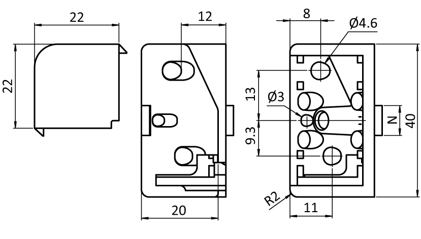 1 frame corner connector 20 x 40 - slot 8,