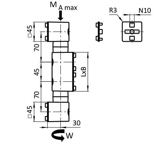 4 screws DIN EN ISO 4762 (DIN 912) - M8 x 45 (for T-slot nut)