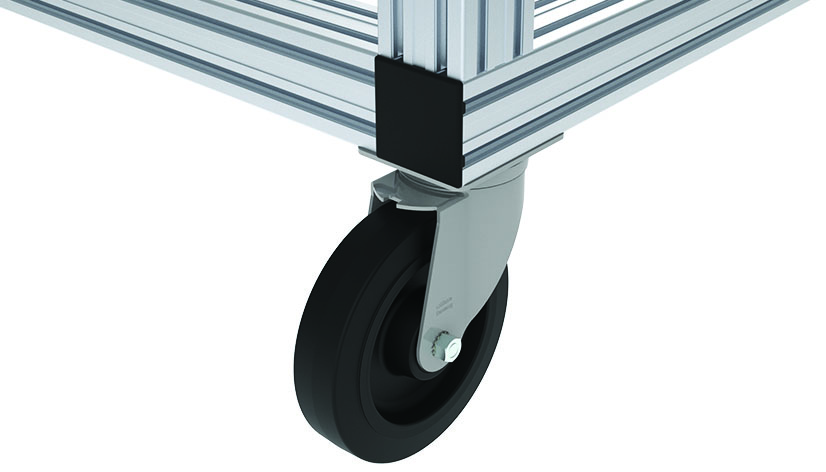 With ball bearings and thread guard integrated mounting plate for fixation to aluminum profiles with modular dimension 40 and 45 mm without overhang