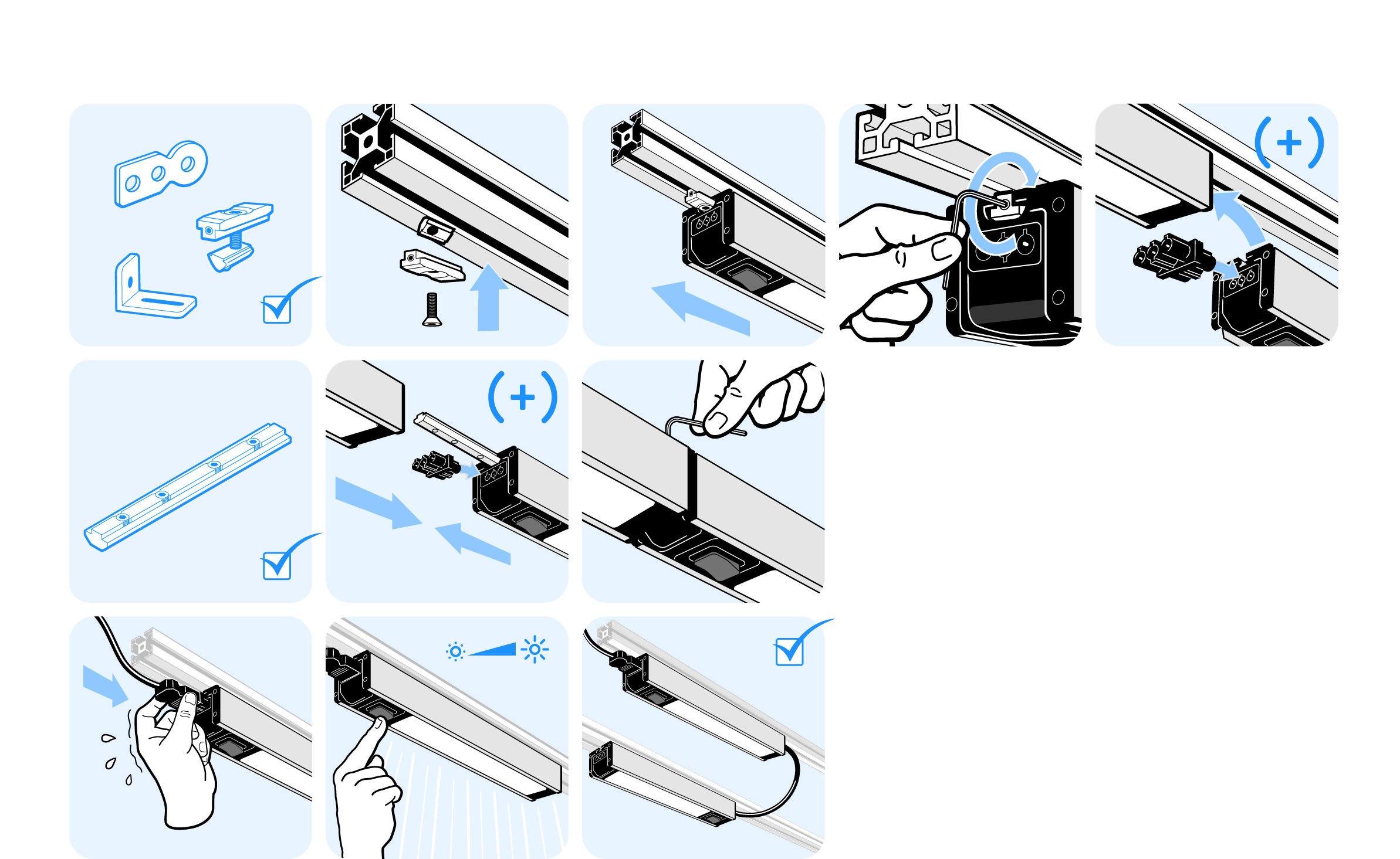 Please note: Chaining of max. 6 modules (LED lamps / power strips), cable length max. 15 m for main power cable, connection cables and modules