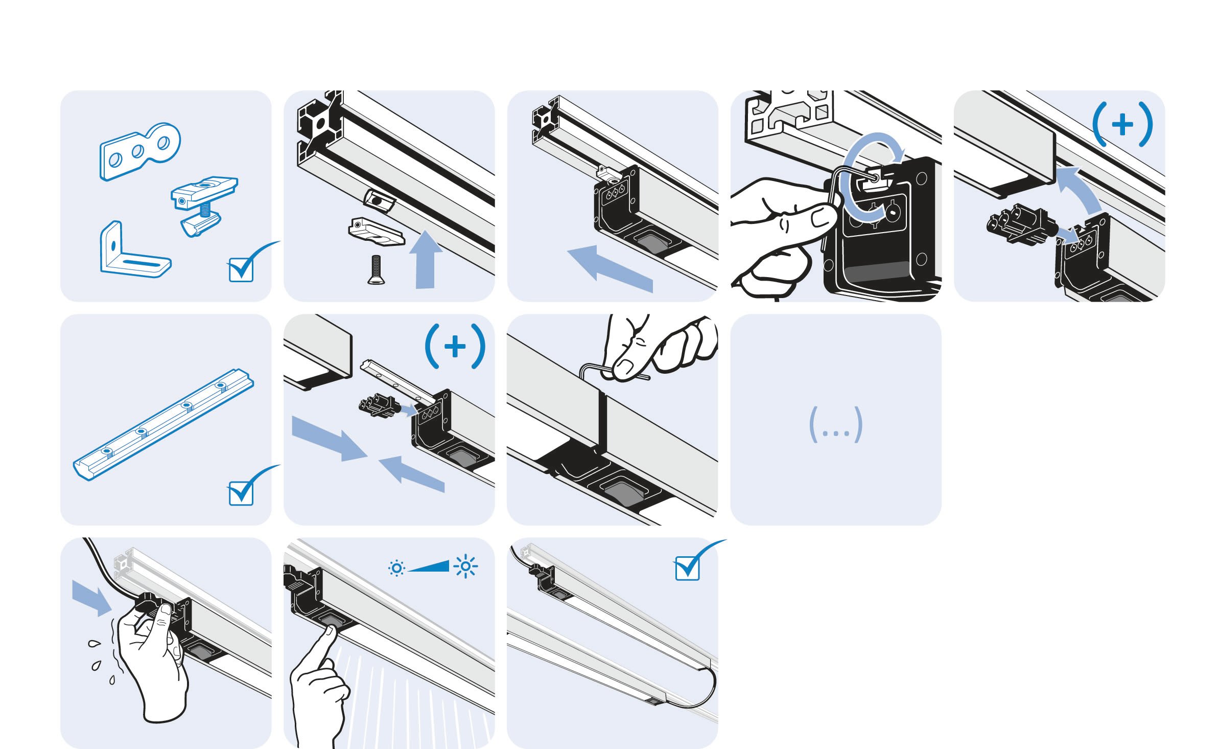Please note: Chaining of max. 6 modules (LED lamps / power strips), cable length max. 15 m for main power cable, connection cables and modules