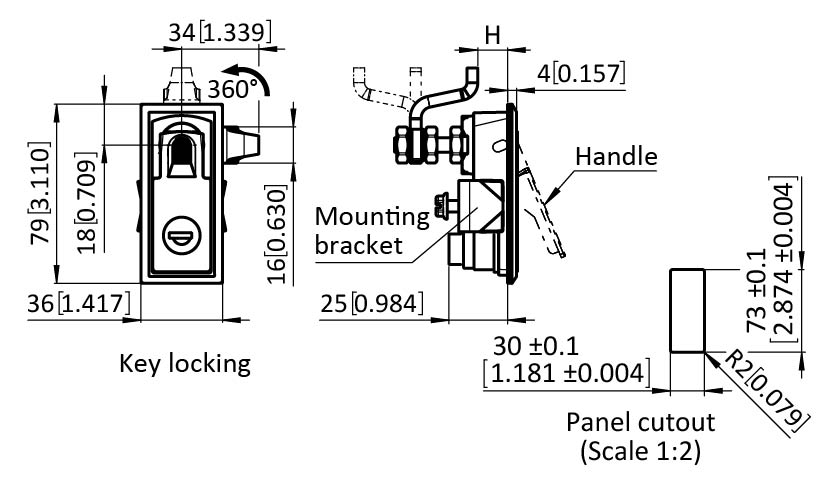 Lift & Turn Compression Latch 73 x 30 Chrome, incl. Cam (Set)