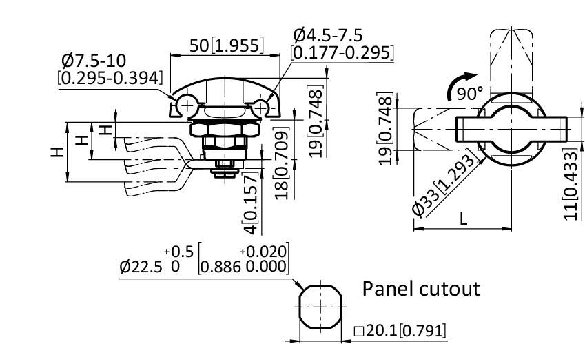 Padlock Compatible Wing Knob 50 Quarter Turn Lock 22.5, Dual Hole