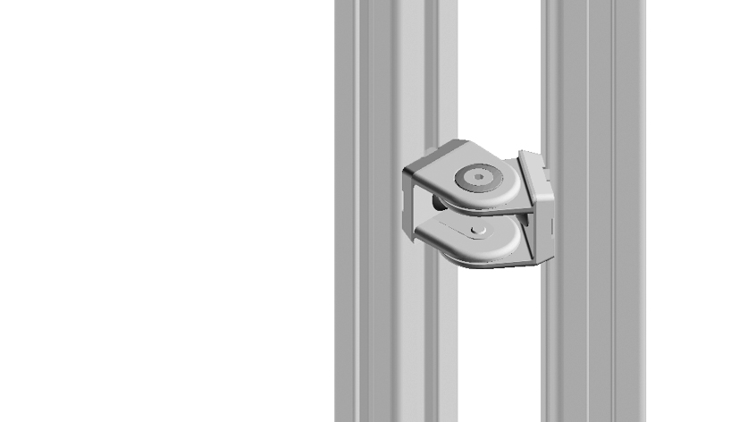 To make a pivoting connection between two profiles or panels; fixed locating pins for slot 6 optional; by tightening or loosening the screws you can seamlessly regulate the functionality of the joint or you can fix it in one position