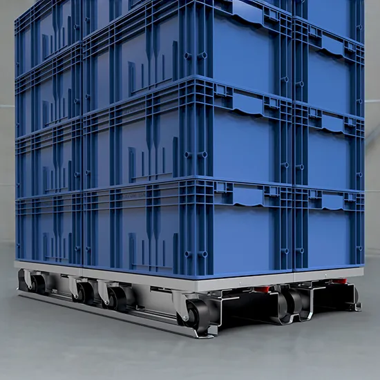 - With a pallet cover and integrated straps, the dollies can be stored on any level