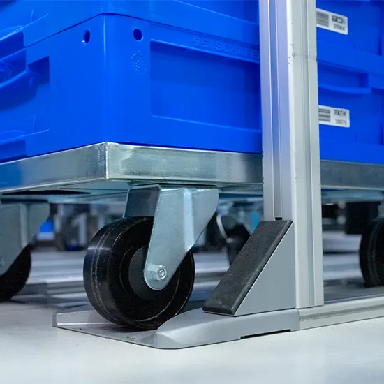 In combination with the FATH Dollies, material supply becomes even more efficient. The Dollies are designed to fit all KLT/Euro containers 600 x 400 mm and offer a high load capacity of up to 250 kg.