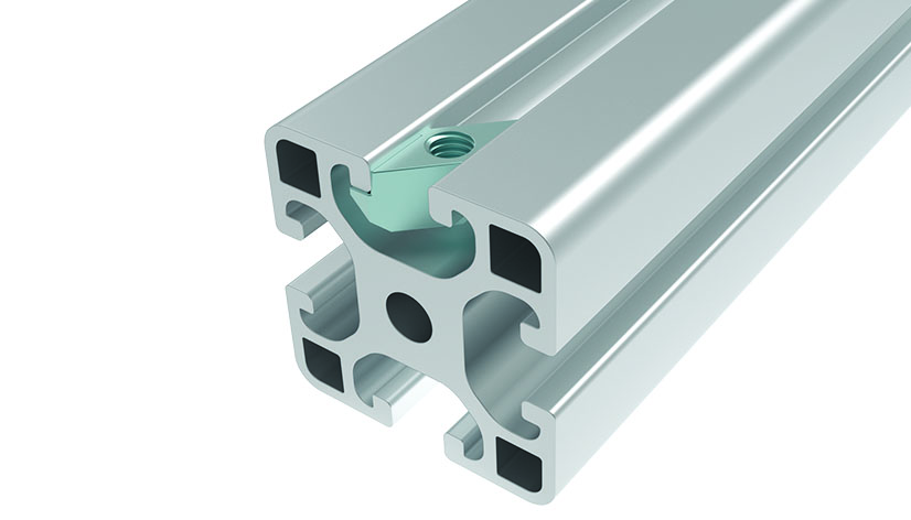 To fasten components to profiles, locks by turning into the slot