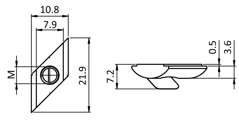 Rhombus T-slot Nut 10.8 x 3.6 mm with Spring Leaf