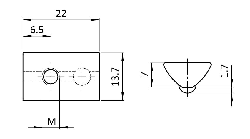 Roll-in T-slot Nut 13.7 x 7.0 mm with Spring Loaded Ball
