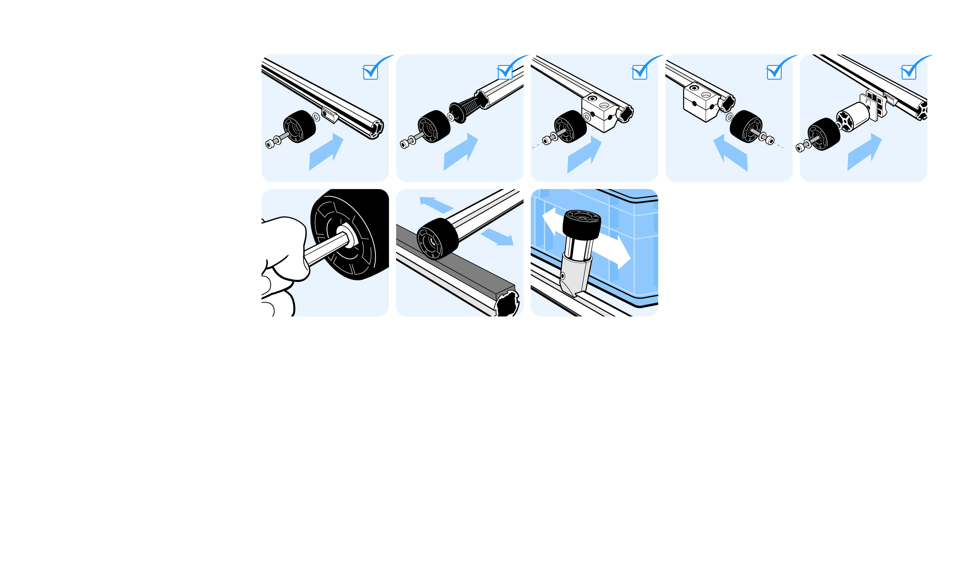 To guide moving parts on a slide rail attached to the aluminum profile or as lateral guide for moved goods ;