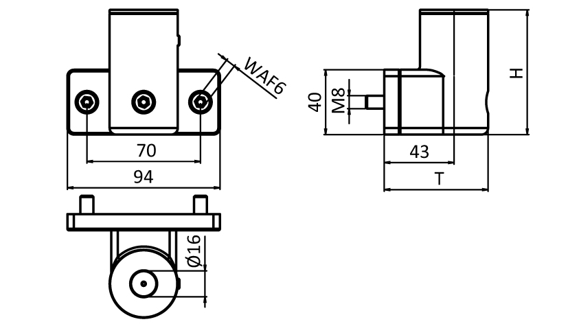 For side mounting on profiles, posts, beams and walls;