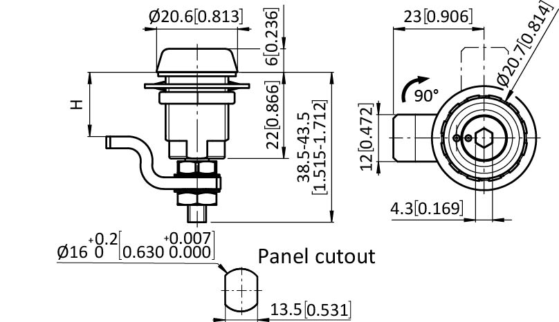 Small Compression Latch 16 / 22, Female Hex 4mm, incl. Cam (Set)