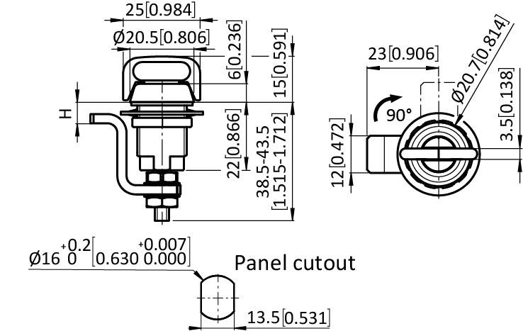 Small Compression Latch 16 / 22, Knob Style, incl. Cam (Set)