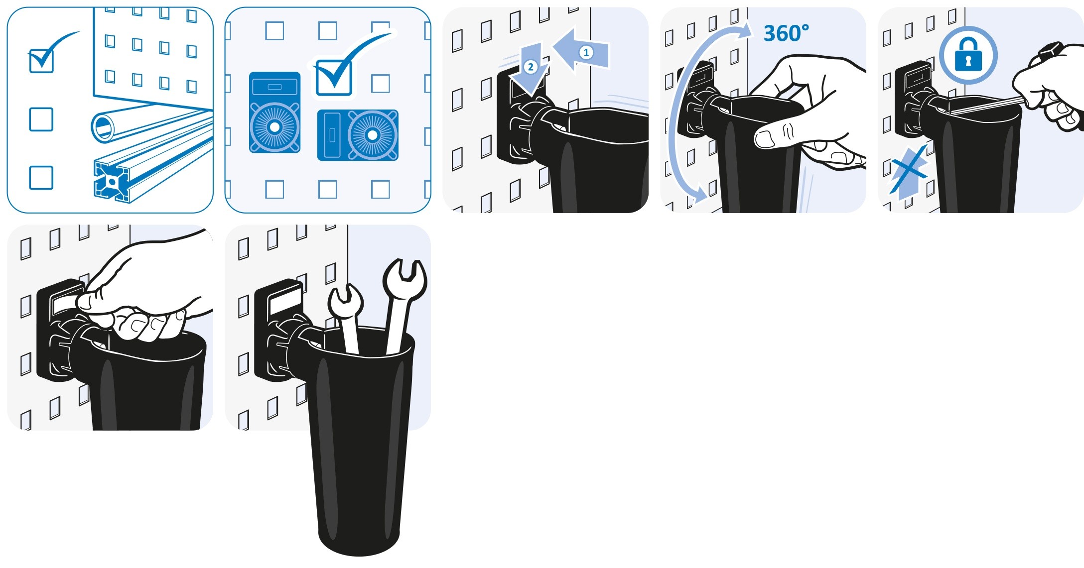 Ready to use tool quiver, outer diameter Ø 50 mm, 360° turnable, for perforated metals up to 1.4 mm thick;