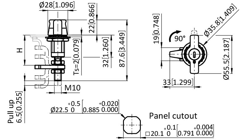 Wing Knob Compression Latch, 22.5 / 32, Long Shaft, incl. Cam (Set)