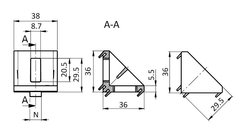 To connect two aluminum profiles or panels at right angles; the connection angle can be closed with the cover cap