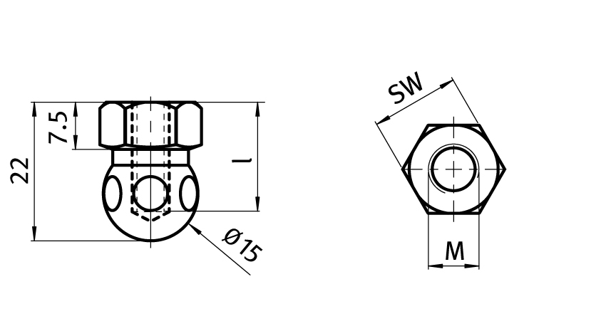 Información sobre el producto "Ball Joint with Female Thread for Swivel Feet, Ball Joint 15"
