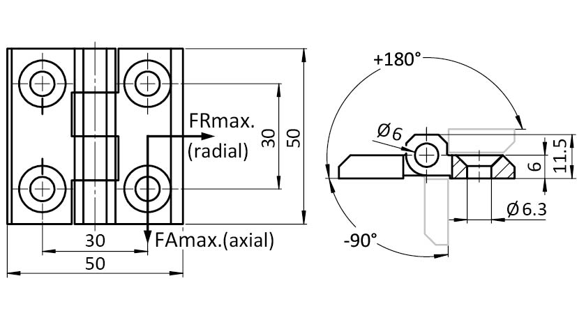Información sobre el producto "Bisagra de acero inoxidable 50 x 50"
