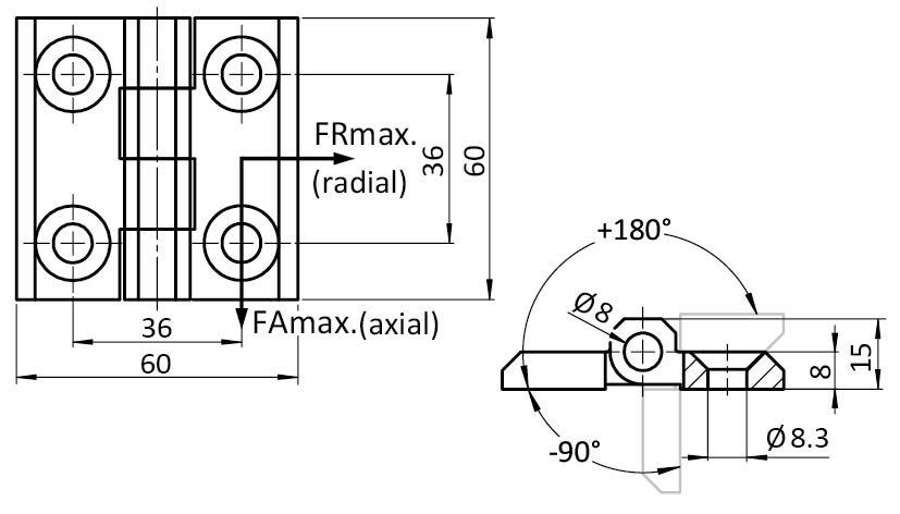 Información sobre el producto "Bisagra de acero inoxidable 60 x 60"