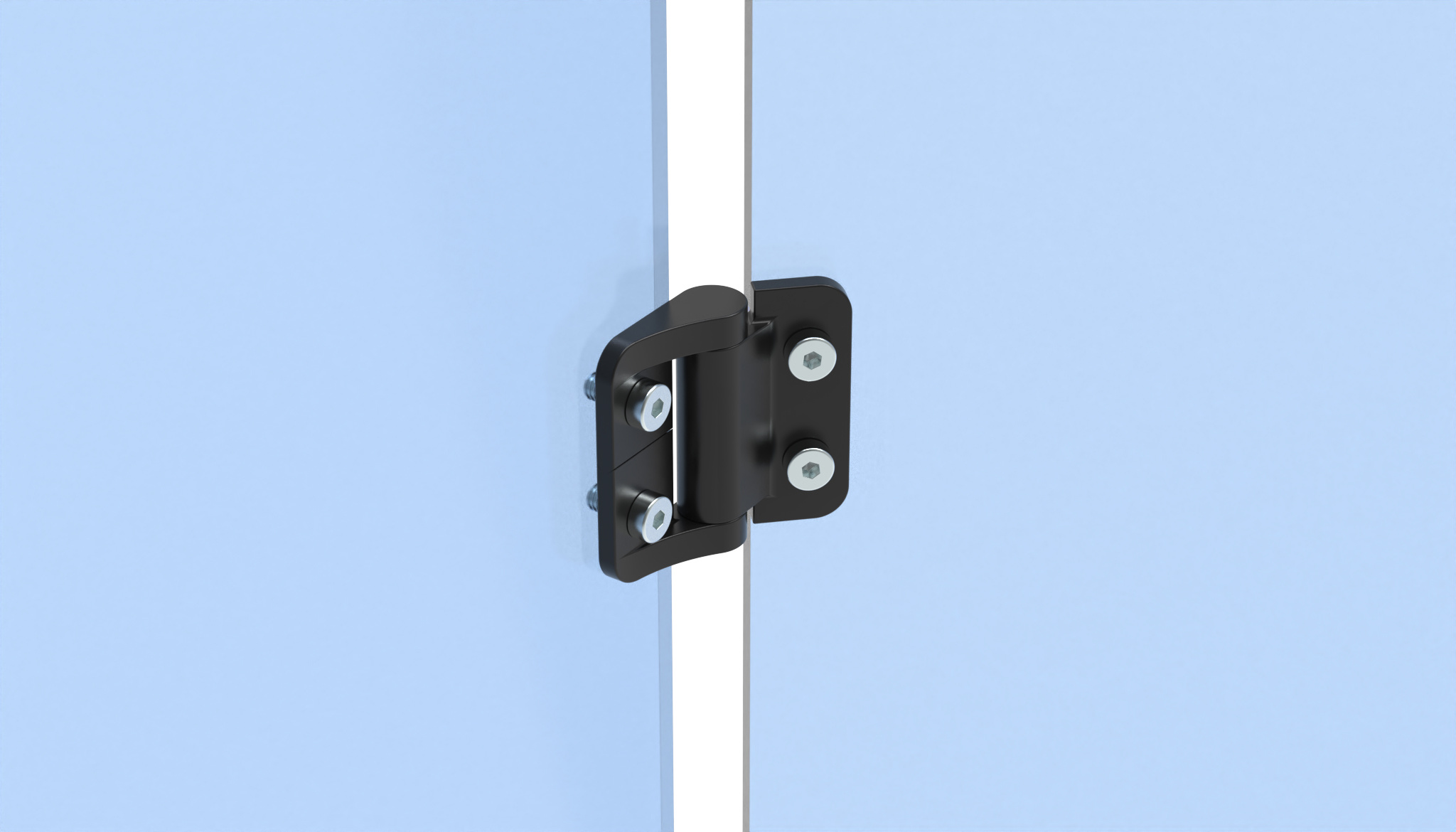 For panels and aluminum profiles; keeps doors open at any angle; also supports lightweight horizontal doors