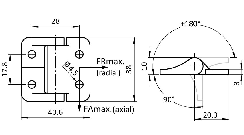 Información sobre el producto "Bisagra de metálica 40 x 38 con fricción constante"