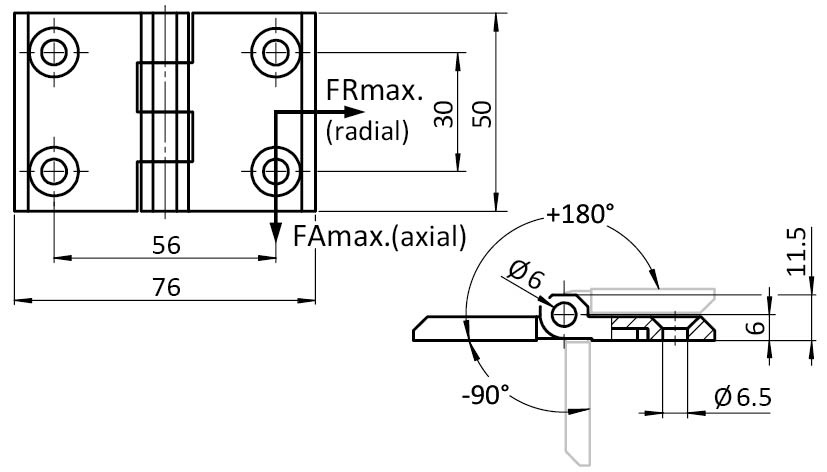 Información sobre el producto "Bisagra de metálica 50 x 76"