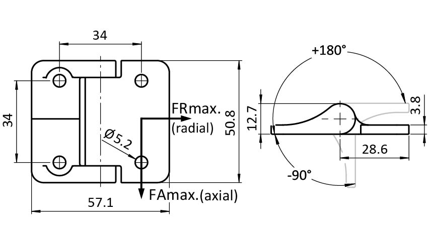 Información sobre el producto "Bisagra de metálica 58 x 51 con fricción constante"