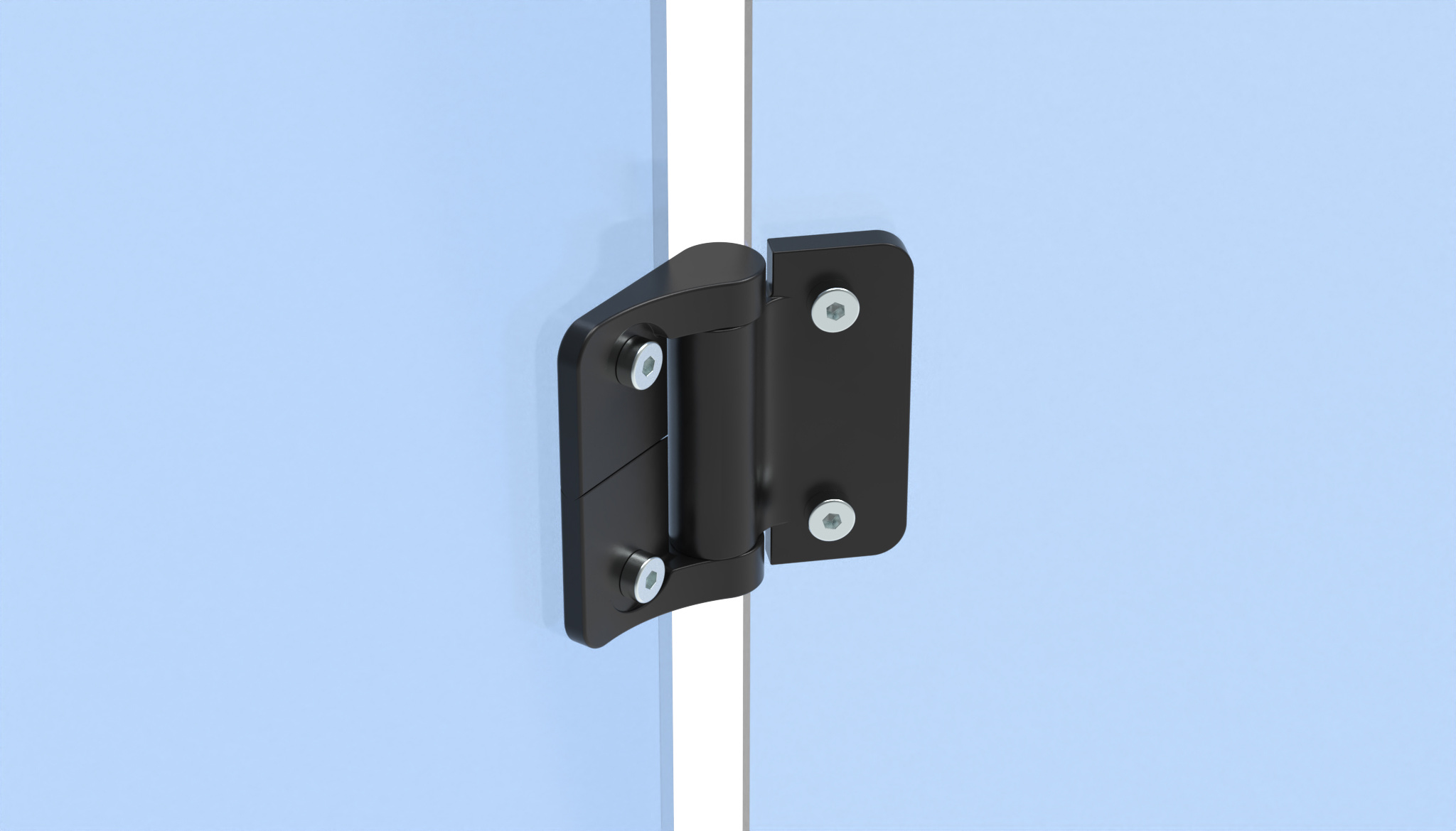 For panels and aluminum profiles; keeps doors open at any angle; also supports lightweight horizontal doors