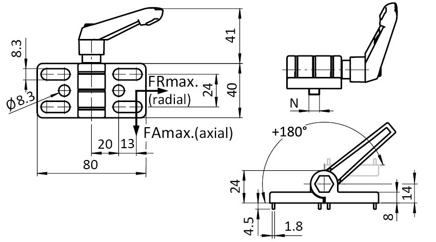 Información sobre el producto "Bisagra de zinc fundido a presión 40 EH con palanca de sujección"