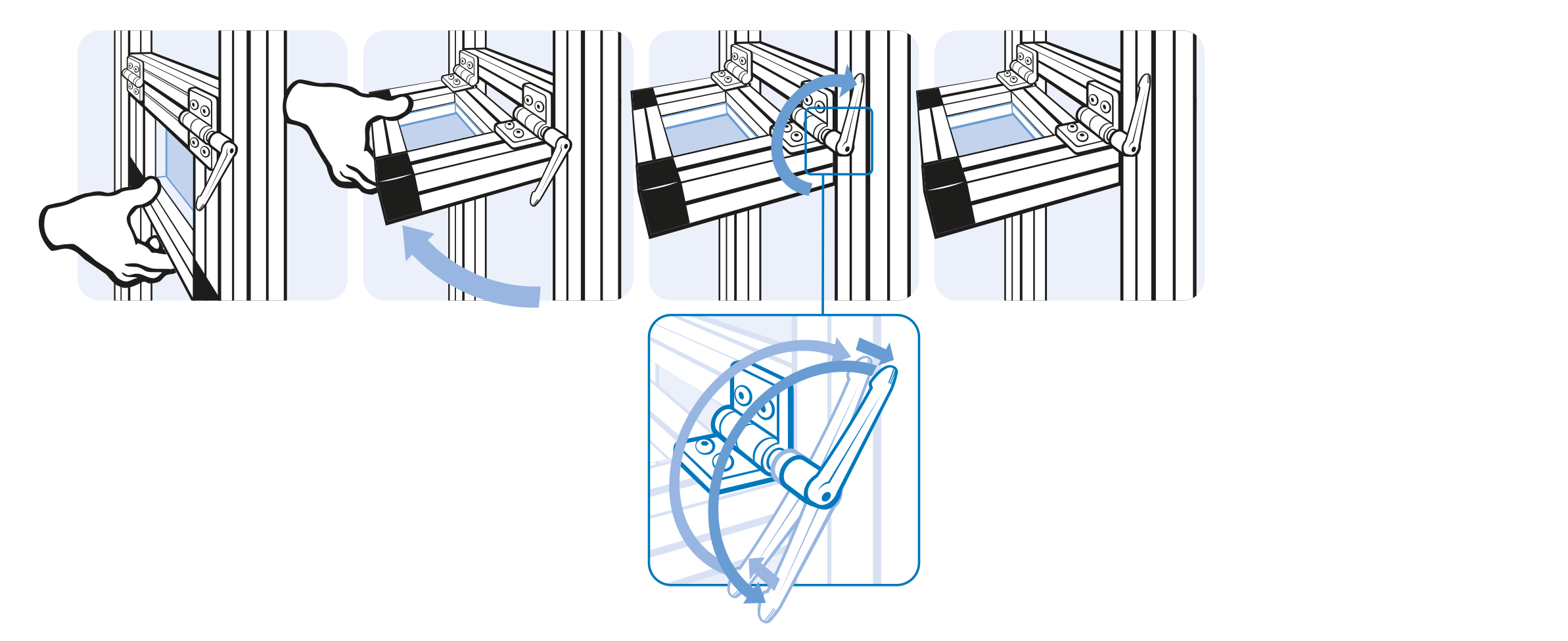 Información sobre el producto "Bisagra de zinc fundido a presión con palanca de sujección"