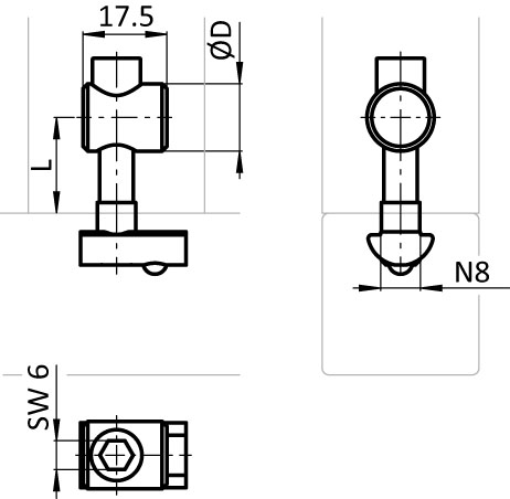 Información sobre el producto "Bolt Connector I, Slot 8, Single Side"