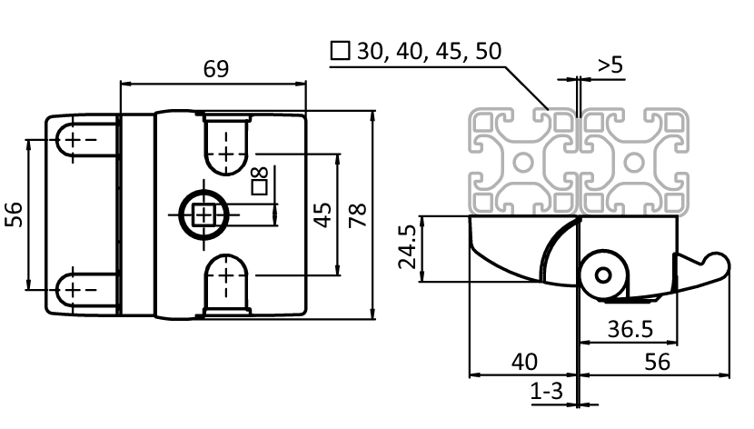 For an easy and secure latching and locking of doors and flaps, no mechanical preparation needed for the assembly; safe against disassembling in the locked position