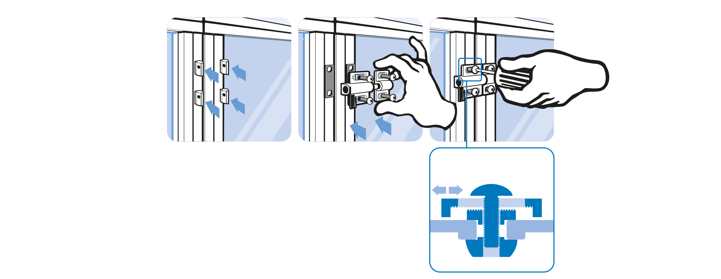 For easy closing of doors and flaps, with spring-loaded clamp;