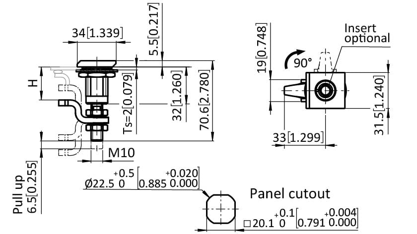 Información sobre el producto "Cierre de Compresión con Cara Cuadrada 22.5 / 32, Eje largo, Incluye Lengüeta con Escalón (Juego)"