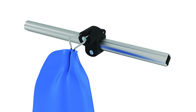 Ready to use cloth clip, 360° turnable, for tubes or tubular frame profiles;