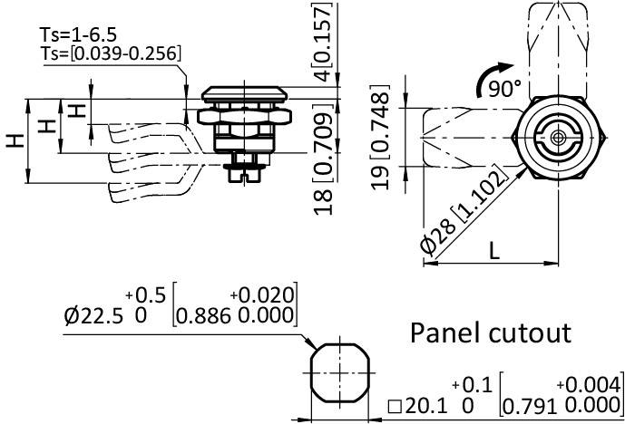 Cuarto de Vuelta Estándard de la Industria 22.5 / 18, Resistente a la vibración