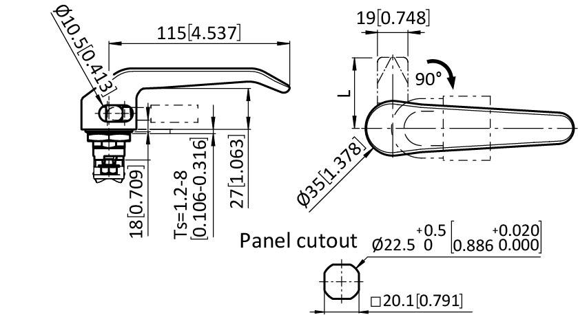 Información sobre el producto "Cuarto de Vuelta con Maneta en L interna para Candado 22.5 / 18"