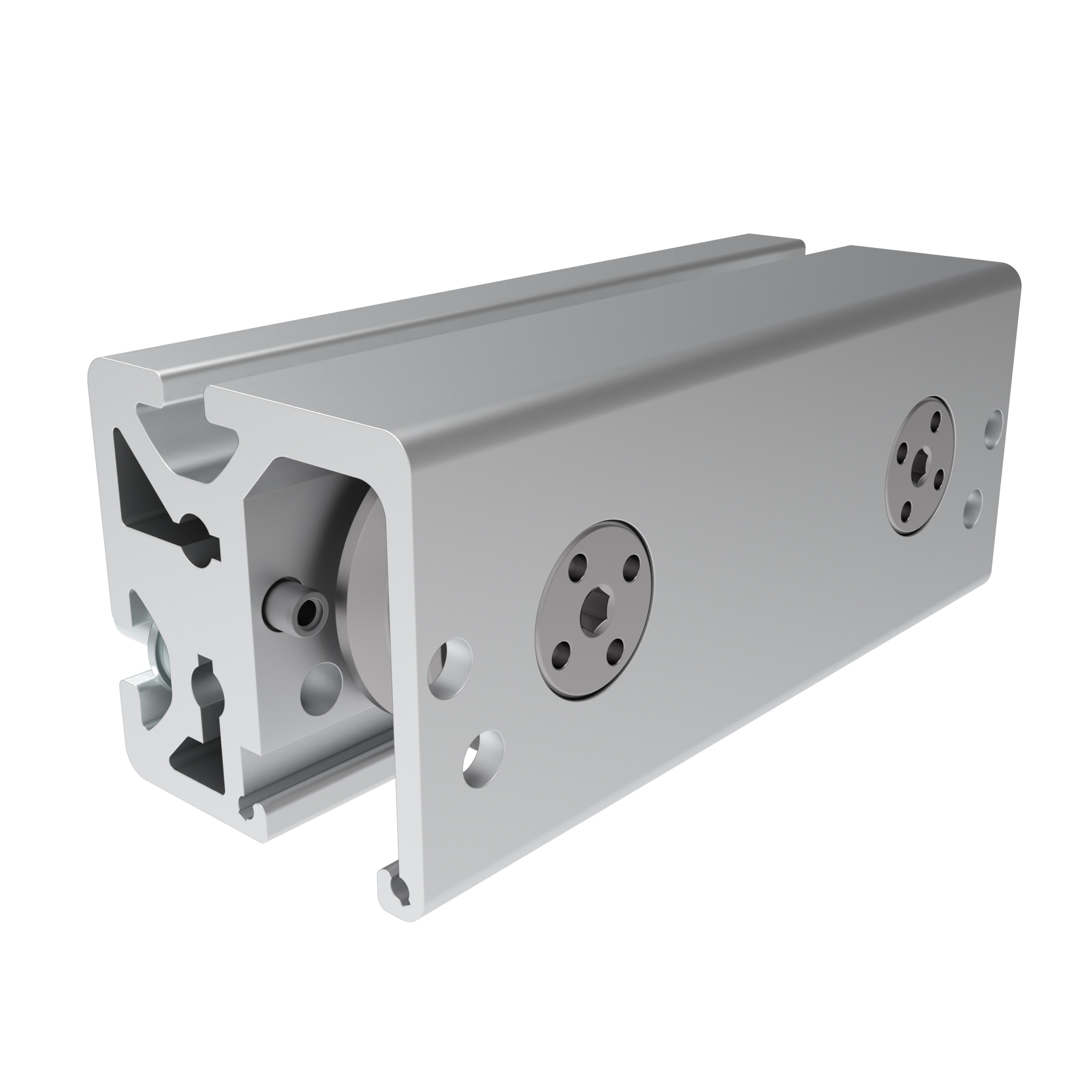 To linearly guide loads, steel roller with ball bearings runs directly on shaft Ø 14 mm