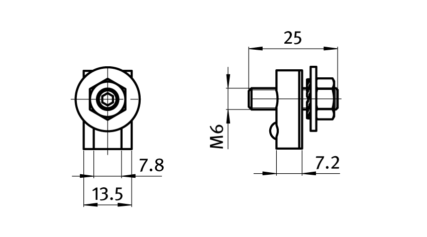 T-Slot Nut, grub screw, serrated washer: Steel