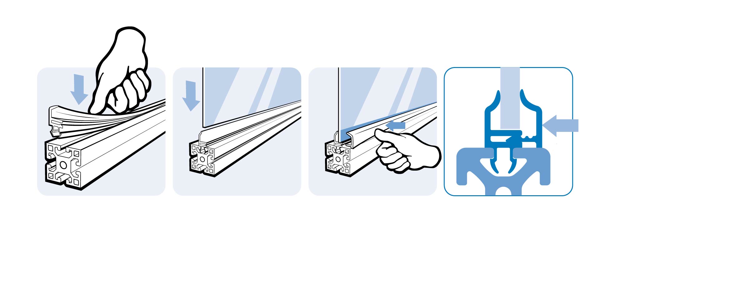 For subsequent insertion of panels of size 2.0 - 10.0 mm, creates a sealed connection against spray water and dust
