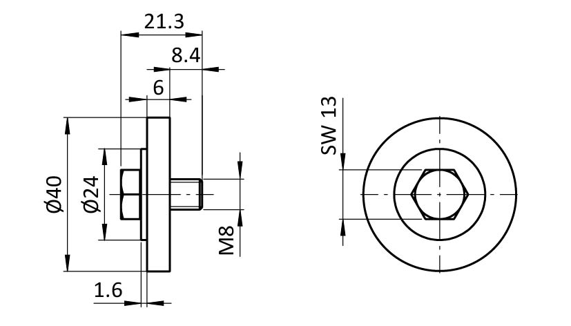 1 screw DIN EN ISO 4017 (DIN 933) – M8 x 16 stainless steel,