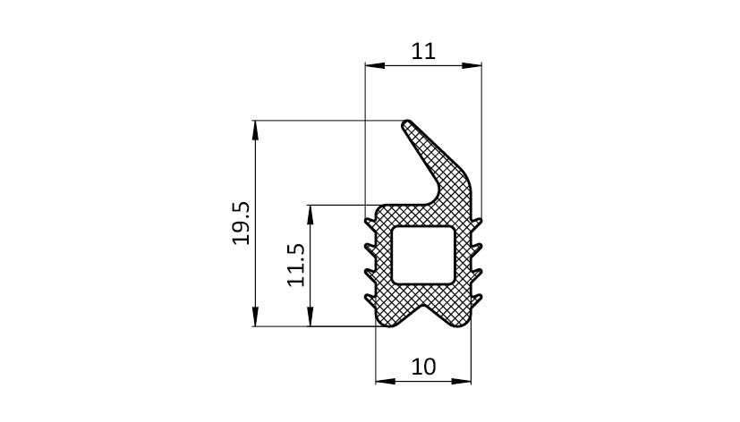For sealing doors and flaps; installed by pressing into 10 mm slot or sealing channel