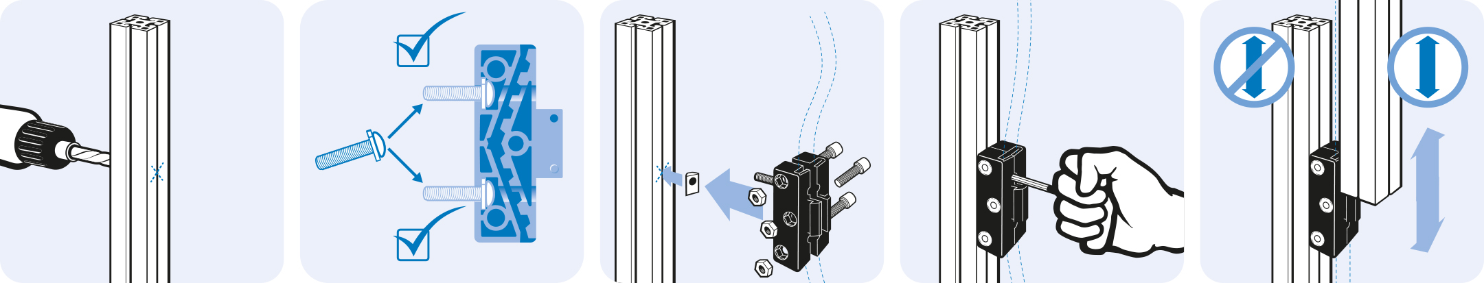 To assemble sliding doors with 25 mm width PUR toothed belt DIN 7721 T10 (not included in delivery)