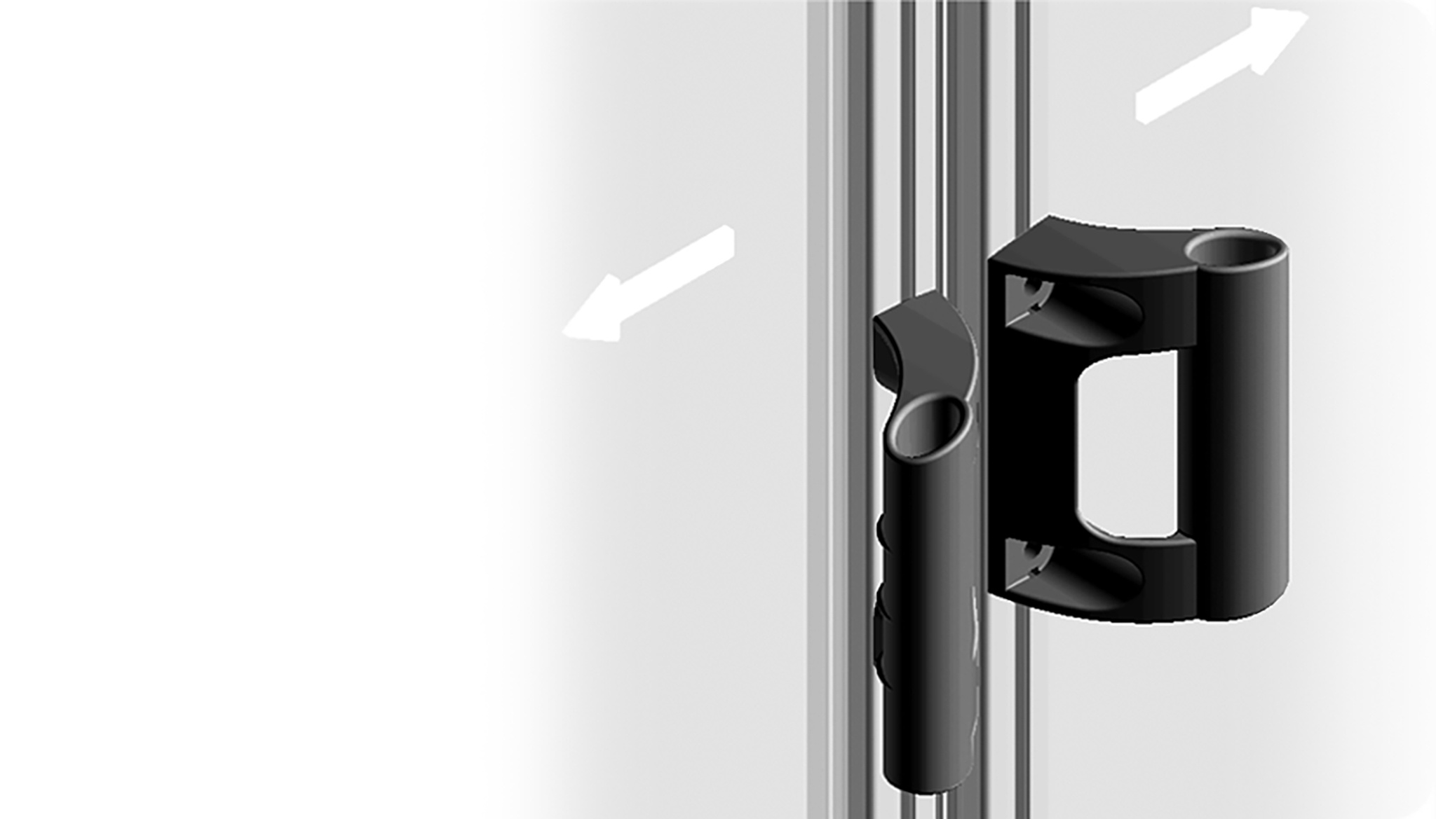 Machine handle with ergonomic design and finger protection; to mount on doors, flaps and aluminum profiles;