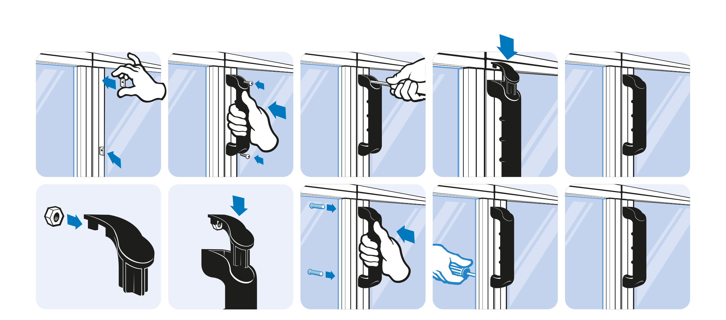 To mount on doors, flaps and aluminum profiles