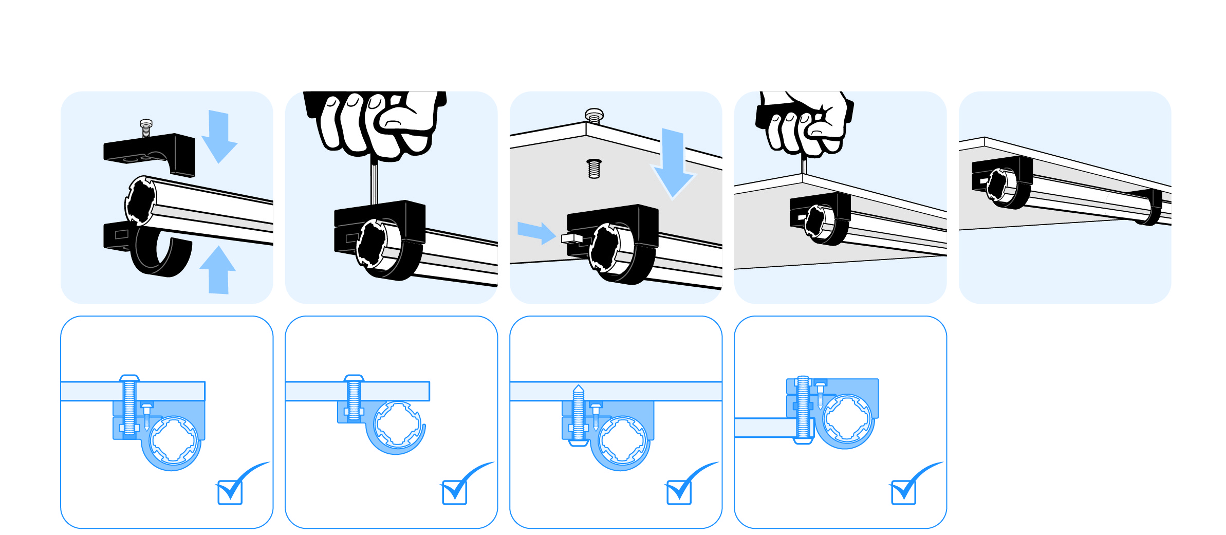 To attach panels universally to tubes and tubular frame profiles with Ø 30 mm outer diameter; including spacer to position panels over outer tubular frame connectors D30