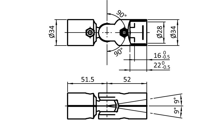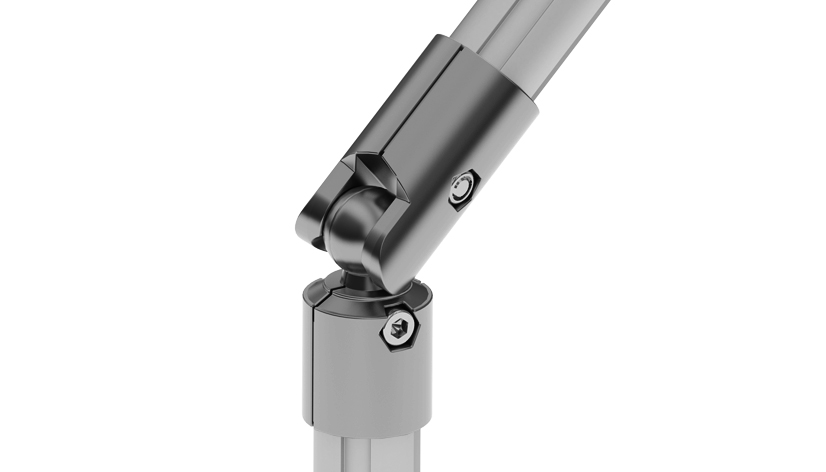 To connect two tubular frame profiles with Ø 28 mm outer diameter at variable angles, with pre-centering; completely pre-assembled set
